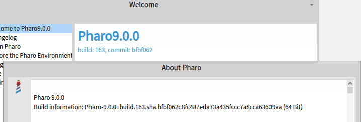 The issue we were interested in did not exist on build #162 and it stopped working in build #163. The next step is to understand what was introduced in build #163. Once we have the breaking build, we need to obtain the PR that lead to the change. We can obtain the PR commit from the image file name given by the launcher, or we can get it from the about and help dialogs in Pharo.